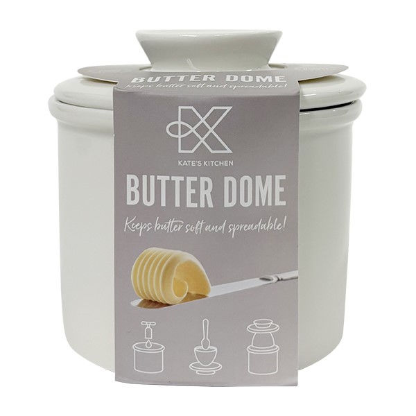 Keep your butter blissfully soft with the Kates Butter Dome! Say goodbye to fridge-hard butter and hello to smooth, spreadable goodness. Here’s how it works: