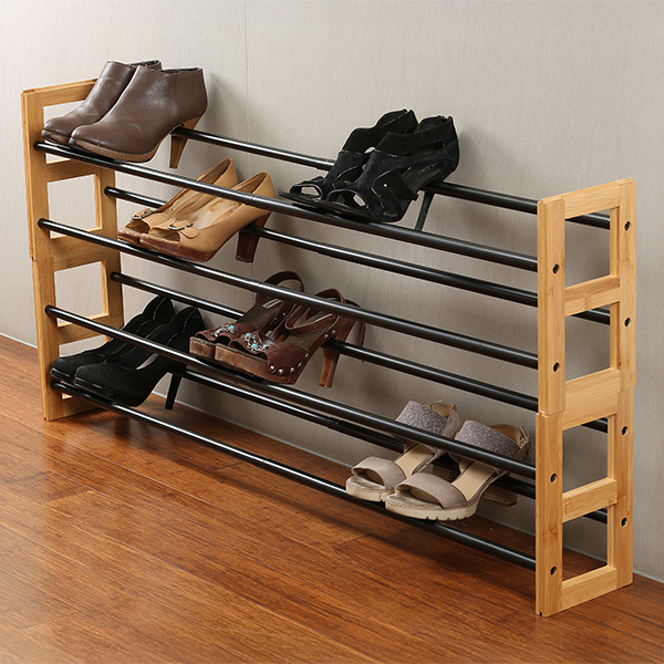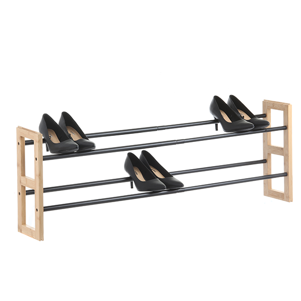 LTW Bamboo Expandable Shoe Rack Powder Coated Black