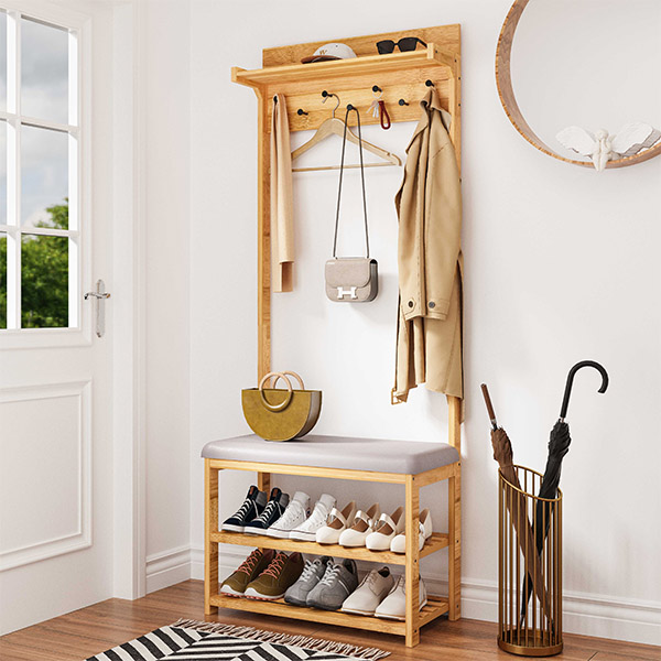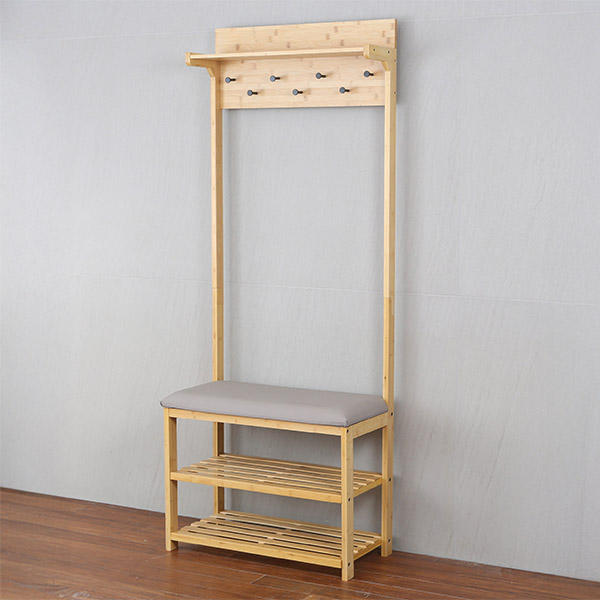LTW Bamboo Hall Stand With Grey Seat