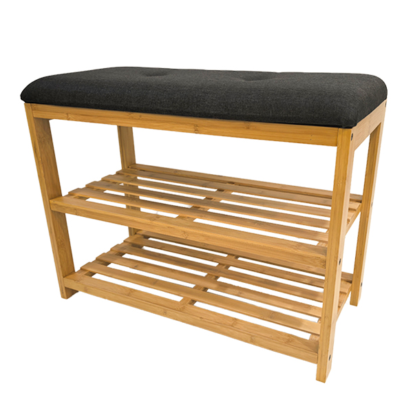 LTW Bamboo Shoe Rack With Charcoal Seat