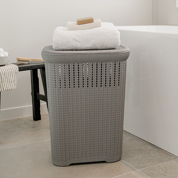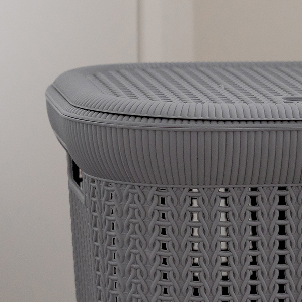 Seymours Knit Laundry Hamper with Hinged Lid 50L Grey