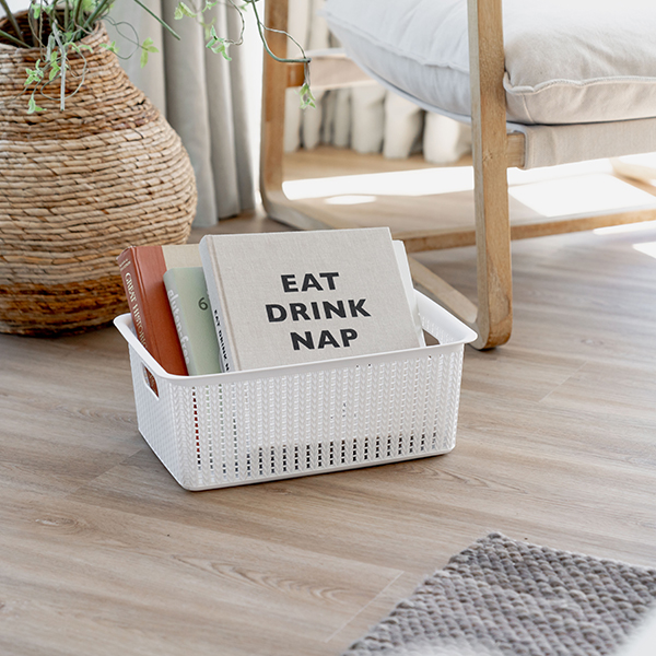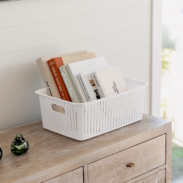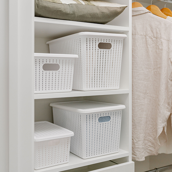 Stylish and stackable, this knit storage range is perfect for keeping any space neat and organised. With a breathable knitted design that adds texture and airflow, each piece is available in a variety of shapes and sizes, including a stacking basket that features indented lids for easy stacking. Built-in handles make carrying a breeze.