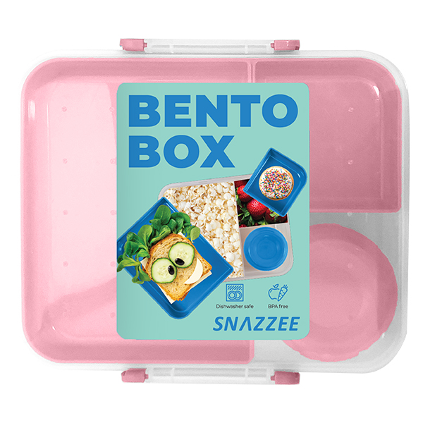 Meet the Snazzee Bento Box, lunch made easy! Perfect for school, work, or weekend snacks, this cheerful bento comes with a secure lid, two removable compartments, and a handy lidded container for sauces or treats.