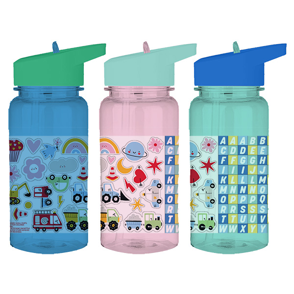 Sip, stick, and show off your style! This mix-and-match drink bottle comes with a set of fun stickers so kids can create their own one-of-a-kind design. With a straw sipper lid and lightweight feel, it’s perfect for school, sports, or adventures on the go. Affordable, creative, and totally kid-approved.