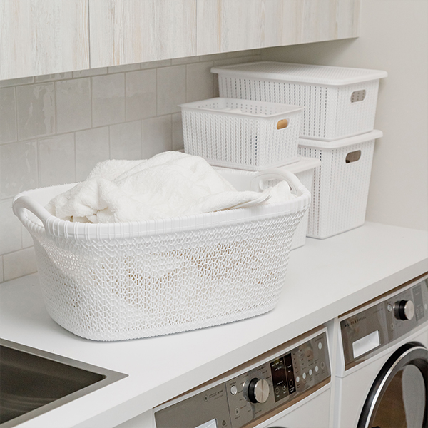 Beautifully practical, this knit laundry range brings style to everyday storage. With a modern knitted texture that enhances airflow and adds visual appeal, these baskets are designed to look good in any room. Each features built-in handles for easy carrying and a lightweight yet sturdy construction that makes laundry day a little easier.