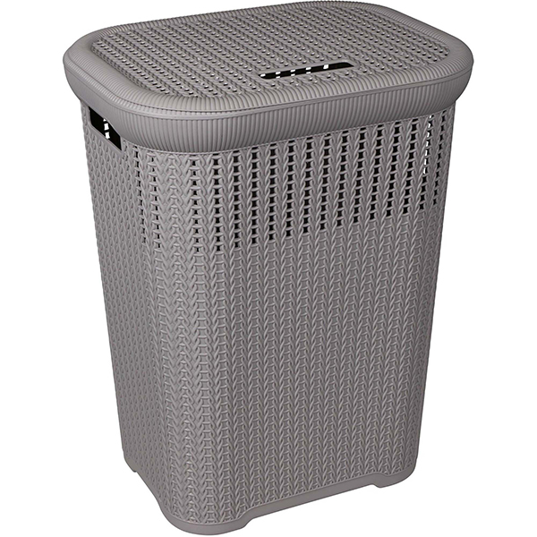 Seymours Knit Laundry Hamper with Hinged Lid 50L Grey